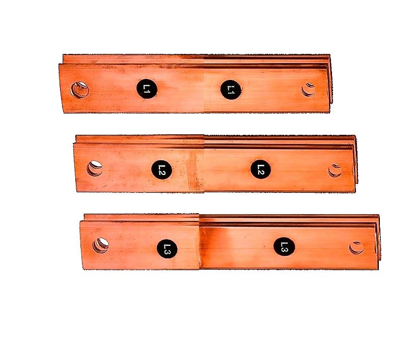 Barramento Fabricado em COBRE Eletrolítico de alta pureza para derivação elétrica lateral e central de disjuntores de caixa moldada.